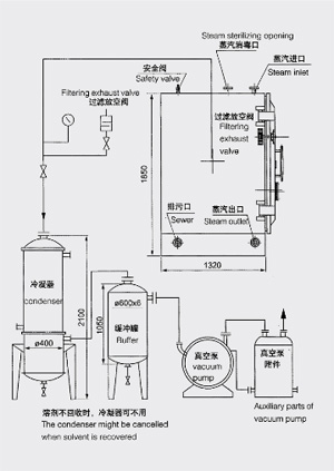 注:如采用冷凝器.物料中的溶劑可通過冷凝器加以回收,如溶劑為水,可不用冷凝器,節省能源投資。