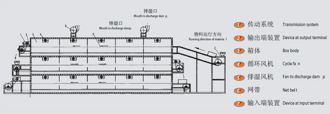 DW系列多層帶式干燥機是成批生產(chǎn)用的連續(xù)式干燥設(shè)備,用于透氣性較好的片狀、條狀、顆粒狀物料的干燥,對于脫水蔬菜、催化劑、中藥飲片等類含水率高、而物料溫度不允許高的物料尤為合適;該系列干燥機具有干燥速度快、蒸發(fā)強度高、產(chǎn)品質(zhì)量好的優(yōu)點, 對脫水濾餅類的膏狀物料, 需經(jīng)造粒或制成條狀后方可干燥。